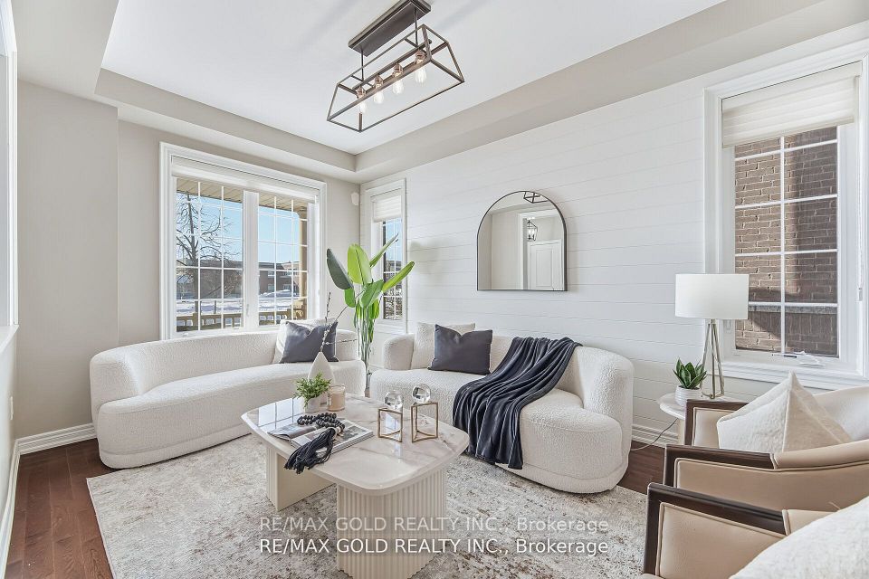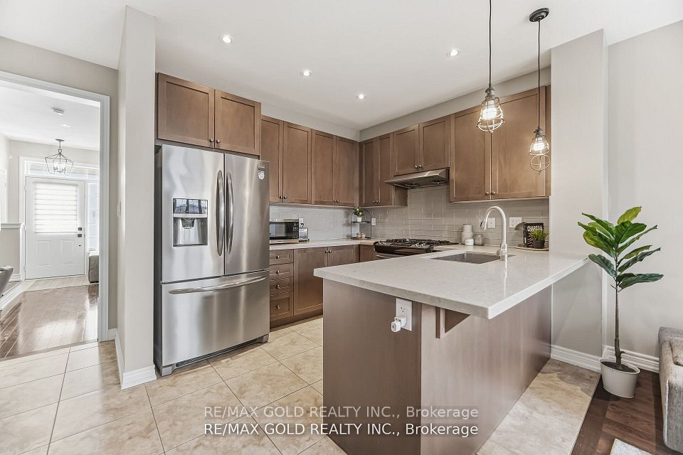 Welcome to this stunning end-unit townhome that truly feels like a SEMI detached bright, spacious, and impeccably upgraded located in the heart of sought-after Kleinburg, Vaughan. Offering approximately 2,232 sq ft of well-designed living space, this 4-bedroom, 3-washroom home blends style, comfort, and functionality. The main floor features 9 ft ceilings, hardwood flooring throughout, upgraded light fixtures, pot lights, and elegant oak stairs. Enjoy a functional layout with a formal living area, an upgraded kitchen complete with quartz countertops, stylish backsplash, and stainless steel appliances, seamlessly combined with dining and family spaces. The family room showcases a custom feature wall with an electric fireplace and built-in entertainment unit perfect for everyday living and entertaining. Upgraded window coverings add a refined finish throughout. The second floor is dedicated to a private primary bedroom retreat featuring a luxurious 5-piece ensuite, his-and-her closets, convenient laundry room, and a versatile media loft ideal for a home office or reading nook. The third floor offers three generously sized bedrooms and a 4-piece bathroom, providing ample space for family and guests. Additional highlights include an unfinished basement with endless potential, a rare 2-car garage with interior access, and excellent natural light thanks to its end-unit positioning. Ideally located directly across from a Catholic elementary school and just steps to everyday conveniences including Longo's, Tim Hortons, McDonald's, major banks, LCBO, pet stores, and more. Only minutes to charming Kleinburg Village-enjoy fine dining, upscale cafes, boutique shopping, and weekend strolls. A perfect blend of luxury, location, and lifestyle.