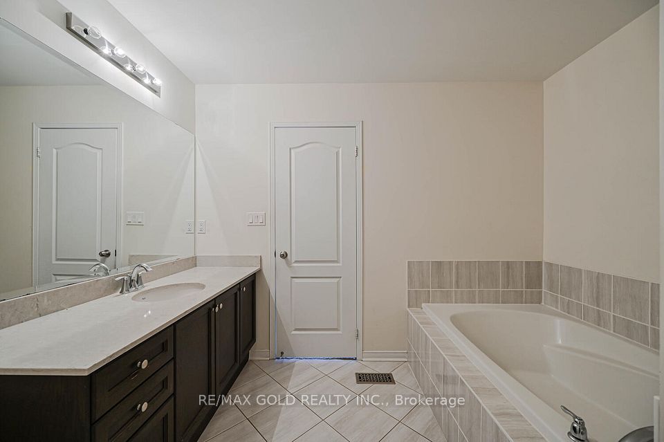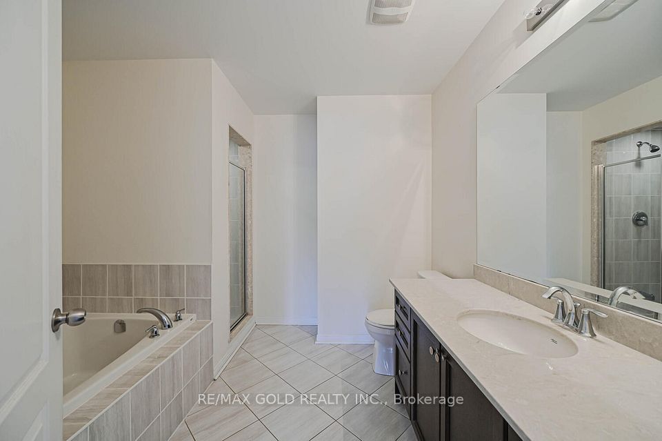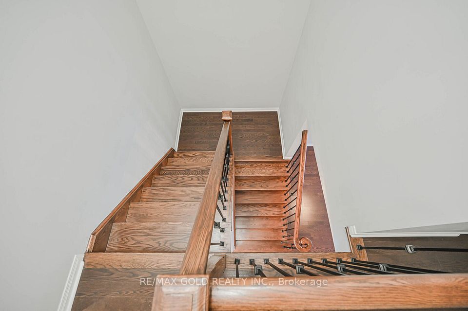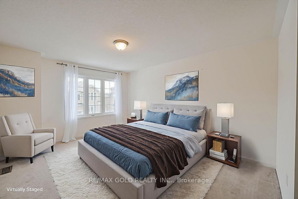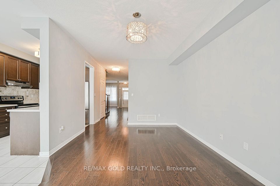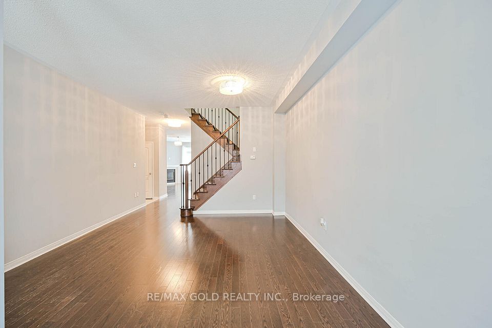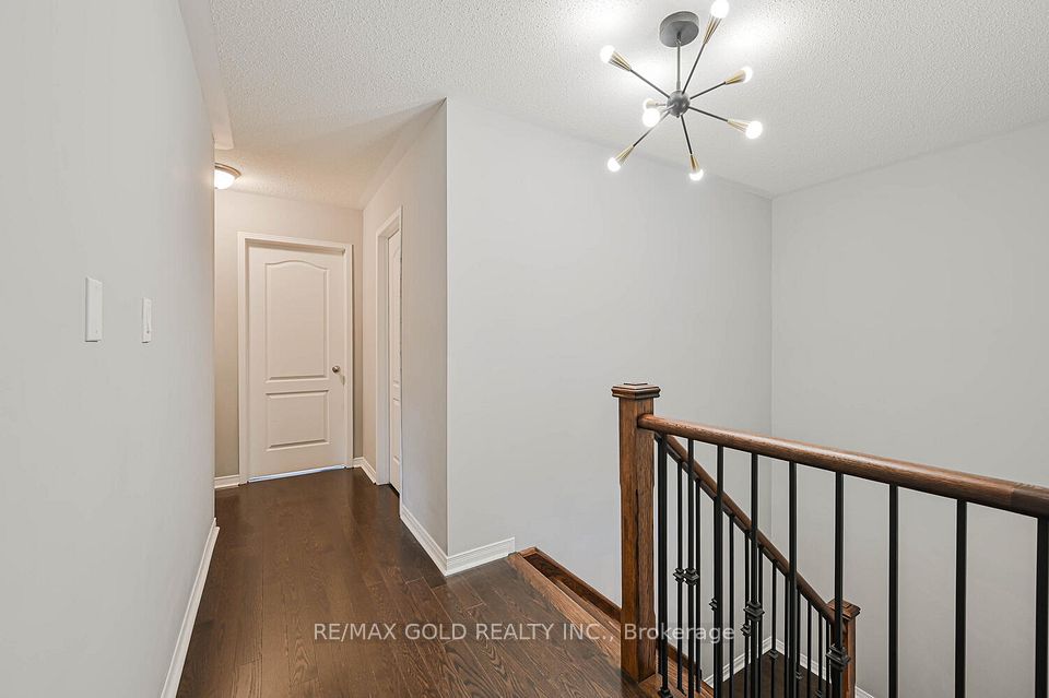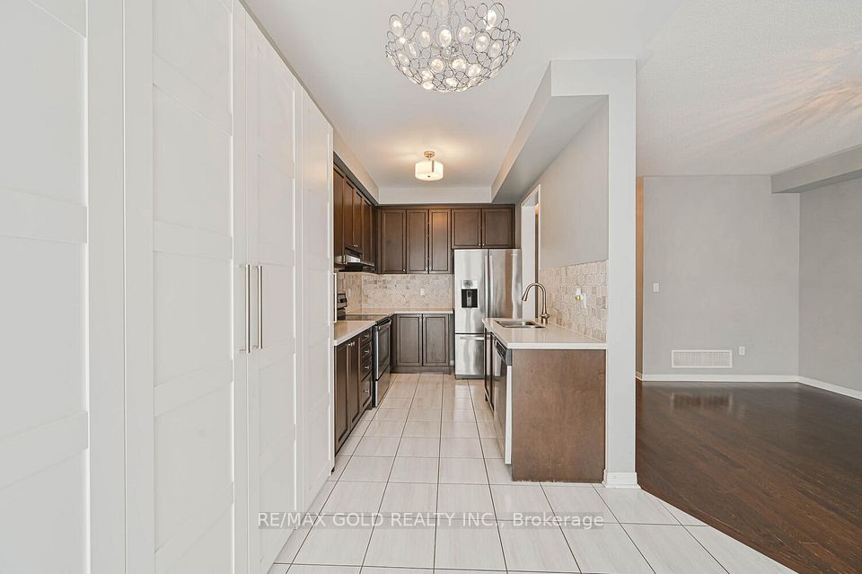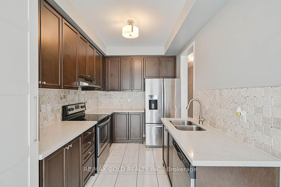 Welcome to this beautifully designed freehold townhouse offering over 2,100+ sq ft of stylish living space, featuring an elegant layout with separate living, dining, and family rooms with a cozy fireplace, 9-ft ceilings, hardwood floors, and a striking oak staircase with iron pickets. The chef-inspired kitchen boasts quartz countertops, custom cabinetry with pantry, and a sleek tile backsplash, ideal for everyday living and entertaining. Upstairs offers 4 generously sized bedrooms, including a primary suite with walk-in closet and private ensuite, along with convenient second-floor laundry and custom closet organizers throughout. The single-car garage includes a mezzanine for extra storage, and the extended driveway fits up to 3 additional vehicles. Located in a family-friendly neighborhood close to parks, schools, shopping, Trinity Commons, Hwy 410, and all essential amenities-this home is a perfect blend of space, comfort, and modern living.