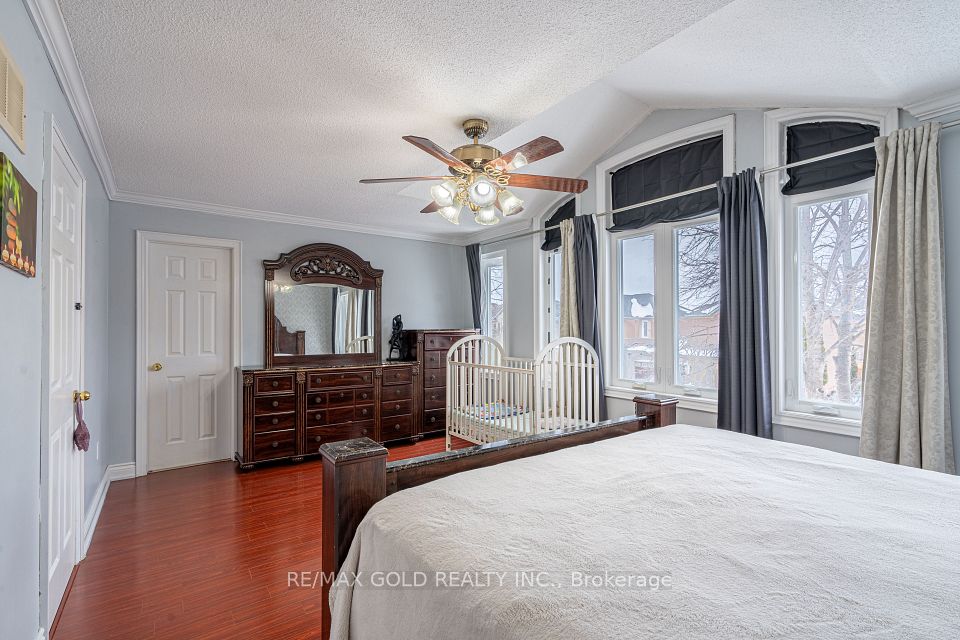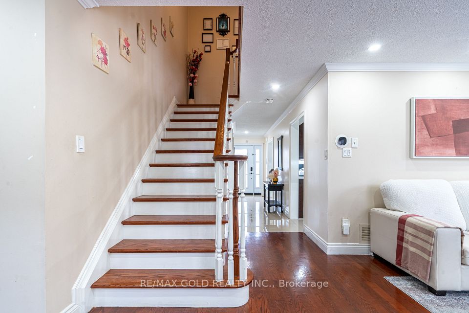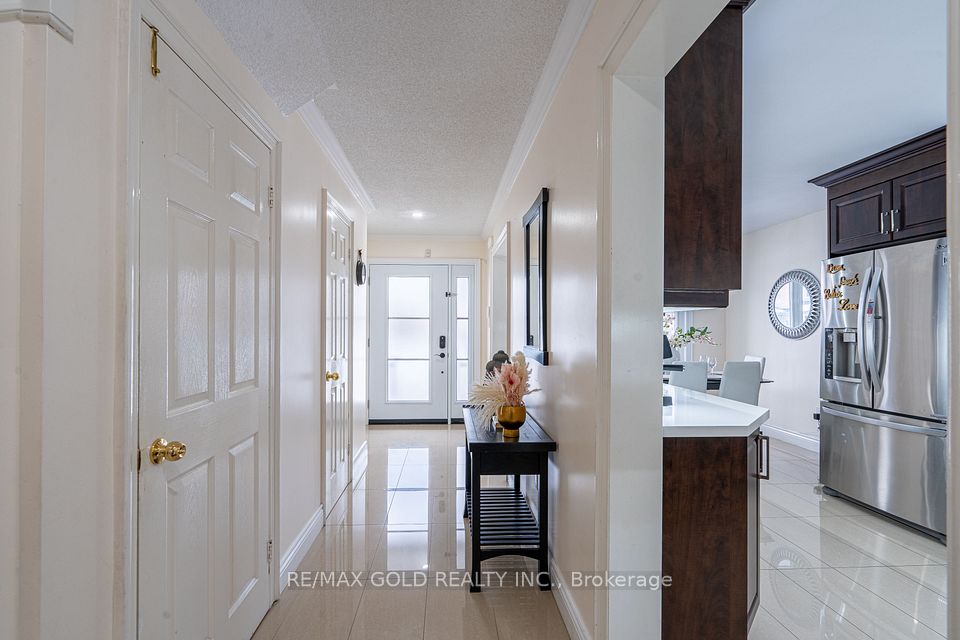 Beautiful 3+1 bedroom detached home linked through the garage, offering a stylish chef's kitchen with quartz countertops, glass backsplash, spice rack, modern tile flooring, and stainless steel appliances. Bright living spaces feature pot lights, freshly painted bedrooms and basement (2025), and upgraded bathrooms including a modern primary ensuite with standing shower. Major updates include brick-to-brick windows (2022), upgraded attic insulation (2026), larger hot water tank, new front door (2025), garage door (2026), and backyard door (2026). Around $60K upgrade in the house. Enjoy low maintenance landscaping, 3-car parking, and a massive backyard deck with raised garden beds - move-in ready and perfect for comfortable family living! Ideally situated for maximum convenience, this home is just a 2-minute drive to Highway 410 and minutes from the vibrant Trinity Common Mall. Residents will enjoy high connectivity through local transit, close proximity to several places of worship, and the benefit of being near the highly-rated public schools.