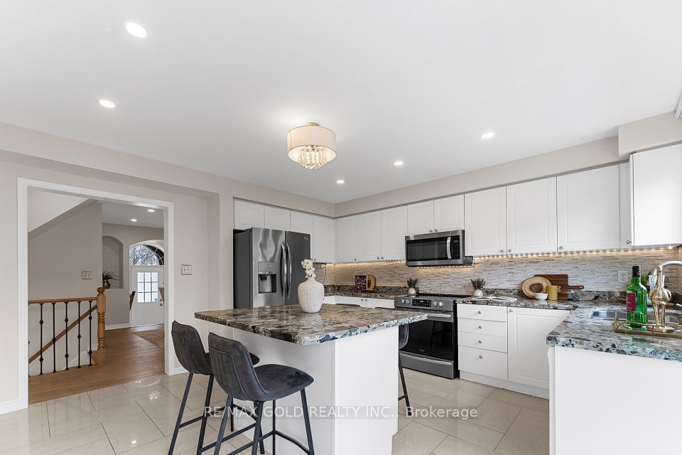 Step into this carpet-free, tastefully upgraded, sun-filled home in the highly sought-after Churchill Meadows community. Featuring hardwood flooring on the main level and tiled kitchen and basement areas, this home offers a clean, modern feel throughout. The elevated living room boasts high ceilings and a walk-out to a private front balcony, creating a bright and inviting space.The spacious kitchen is equipped with granite countertops, a centre island, and stainless steel appliances-perfect for everyday living and entertaining. Featuring two kitchens, this home offers excellent flexibility for extended family or additional living space.Upstairs includes upgraded, spa-inspired bathrooms plus a convenient main floor powder room. Large windows and energy-efficient LED lighting provide abundant natural light throughout.Enjoy an entertainer's backyard with a beautifully upgraded two-level composite deck. Additional highlights include a two-car garage, EV charger, and a functional layout ideal for family living. Close to top-rated Churchill Meadows schools, parks, shopping, and major highways.