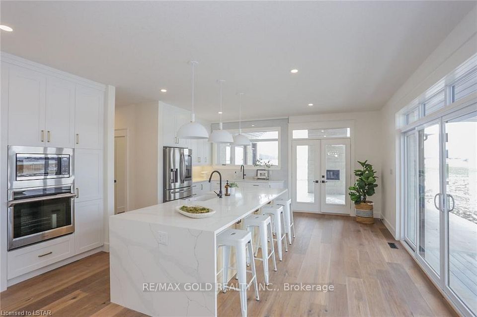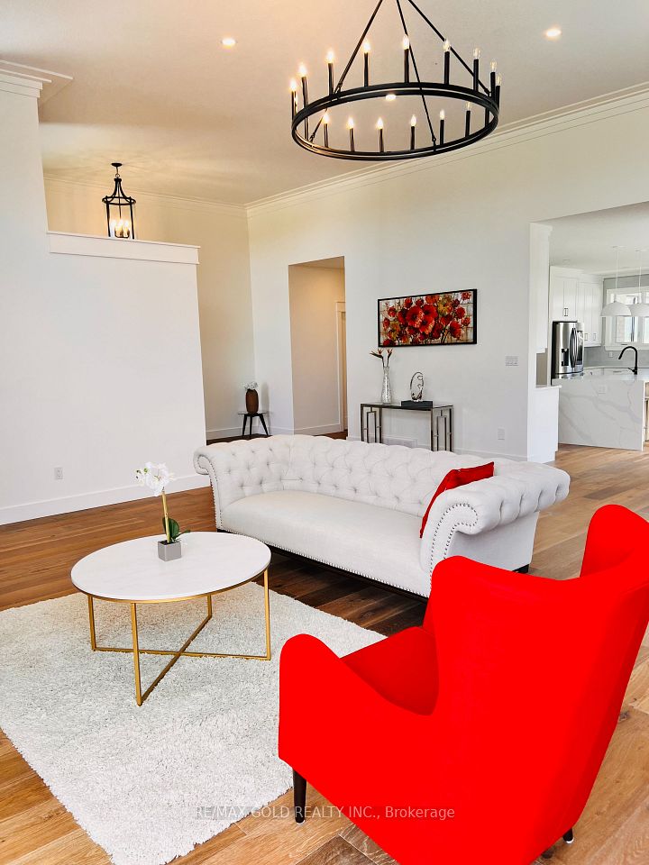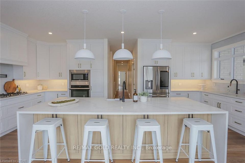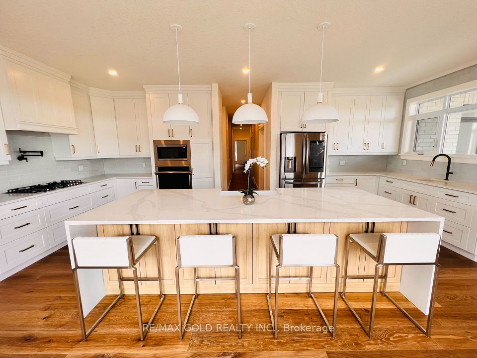 Stunning One Floor Home With Expansive 3908 Sq Ft Of Finished Living Space. Enter Into The Expertly Designed Main Floor Flooded With Natural Light With Hardwood Flooring Throughout. The Sprawling Main Floor Features Great Room With Soaring 12 Ft Ceilings, Electric Fireplace With Wooden Mantel, Feature Wall With Custom Trim Work And Access To The Back Deck; Large Chefs Kitchen With Built In Oven, Gas Stove With Pot Filler, Wine Cooler, Quartz Countertops, Island With Breakfast Bar Including Waterfall Quartz Detail, To The Ceiling Custom Two Tone Cabinetry, Additional Prep Sink, And Direct Access To The Large Wrap Around Covered Back Deck; Three Generous Bedrooms Including Master Suite With Backyard Access, Spacious Walk-In Closet Filled With Custom Storage, Ensuite With Double Sinks And Tiled Shower With Glass Enclosure, And Convenient Access To The Laundry Room; Convenient Two Piece Bath And Mudroom With Custom Cabinetry, Bench And Cubbies.