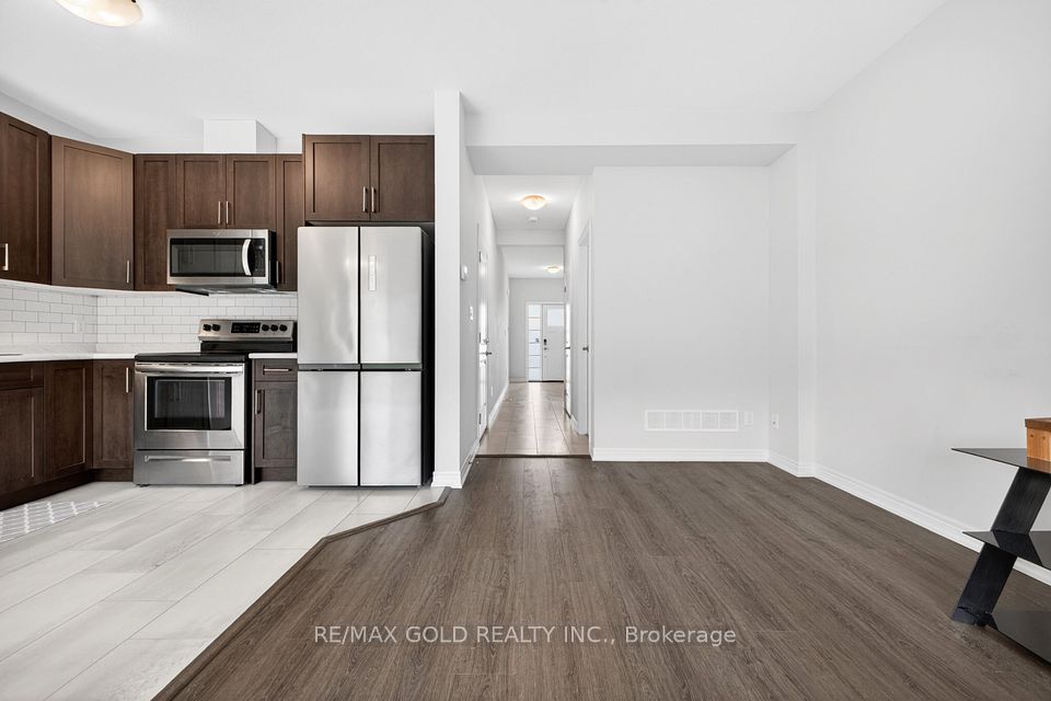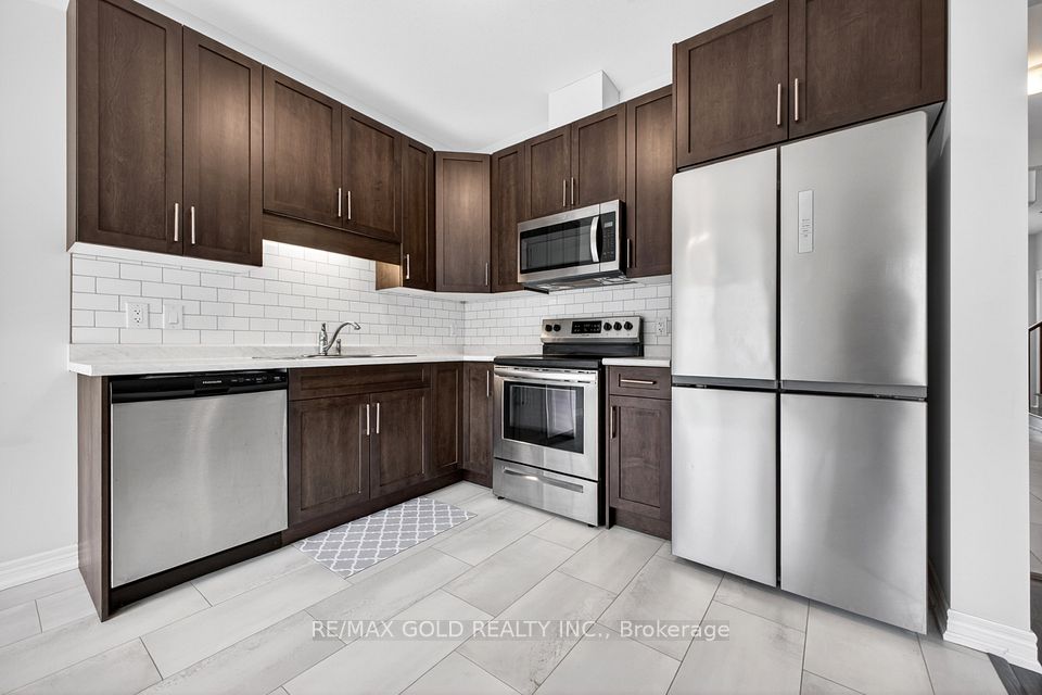 !!Freehold Townhouse with 3 Bedrooms With 2.5 Washrooms!! Laundry On Upper Level!! Master Bedroom With Big Closet & Ensuite Bathroom!! Vinyl Flooring On The Main Floor !! Upgraded Kitchen With Extended Cabinets, Backsplash, Quartz Counters, And Upgraded Carpet On Upper Level!! Oak Stairs!!Unfinished Basement With A Big Window and washroom R/I.